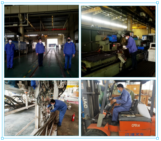 “防疫物資到位、人員排查到位、復(fù)工手續(xù)齊全。疫情防控關(guān)口已下沉到班組,生產(chǎn)正常推進(jìn)。” 經(jīng)過緊張有序的前期準(zhǔn)備工作,地處湖北武漢的中國兵器工業(yè)集團(tuán)武重集團(tuán)正式進(jìn)入復(fù)工復(fù)產(chǎn)狀態(tài)。 3月19日上午8時,首批復(fù)工人員準(zhǔn)時抵達(dá)公司,戴著口罩,在接受體溫檢測、手部消毒后,進(jìn)入廠區(qū)。 提前謀劃 打好“雙戰(zhàn)役” 3月13日以來,武重集團(tuán)先后召開公司黨委會議、董事長辦公會,傳達(dá)學(xué)習(xí)習(xí)近平總書記考察湖北新冠肺炎疫情防控工作時的重要講話精神,樹信心、鼓干勁、戰(zhàn)疫情、促發(fā)展,動員全公司上下緊盯全年各項目標(biāo)任務(wù),迎難而上、奮力拼搏,努力把疫情耽誤的時間“搶”回來,做到貫徹落實習(xí)近平總書記重要講話精神更加到位,統(tǒng)籌推進(jìn)疫情防控和企業(yè)發(fā)展更加有效。 為切實做好公司復(fù)工復(fù)產(chǎn)前后疫情防控,維護(hù)生產(chǎn)經(jīng)營正常運行,按照復(fù)工有關(guān)要求,公司疫情防控領(lǐng)導(dǎo)小組組織制定了《復(fù)工復(fù)產(chǎn)防控新型冠狀病毒肺炎疫情工作方案》、《疫情防控應(yīng)急預(yù)案》以及疫情期間安全生產(chǎn)、員工管理、進(jìn)出廠區(qū)管理和通勤車、食堂、消毒等后勤保障工作細(xì)則等文件,配備了口罩、防護(hù)服、測溫槍、消毒水等防護(hù)用品及應(yīng)急物資,設(shè)置了應(yīng)急隔離區(qū),確保復(fù)工后的防疫所需。 周密部署 筑牢“防疫墻” “復(fù)工任務(wù)雖急,人員安全更重,必須把好人員進(jìn)場第一關(guān)?!痹谌藛T進(jìn)場管控上,武重集團(tuán)建立了這樣一條“硬核規(guī)定”:員工必須每天通過企業(yè)微信提交體溫信息,建立員工健康檔案,筑牢復(fù)工“防疫墻”。 在接到復(fù)工批復(fù)后,公司領(lǐng)導(dǎo)多次帶隊深入生產(chǎn)現(xiàn)場,檢查疫情防控工作和復(fù)工前的各項準(zhǔn)備工作,協(xié)調(diào)解決項目在復(fù)工過程中存在的問題,要求通過優(yōu)化產(chǎn)出計劃拉動復(fù)工復(fù)產(chǎn)體系,使公司上下盡快進(jìn)入達(dá)產(chǎn)達(dá)效狀態(tài)。3月17日到18日,各單位按照各項預(yù)案措施針對安全、設(shè)備、就餐、消毒、乘車、住宿、應(yīng)急體系演練、職工隔離工作等方面進(jìn)行全面排查,全力確保疫情防控精準(zhǔn)到位、安全生產(chǎn)有序推進(jìn)。 公司領(lǐng)導(dǎo)到生產(chǎn)現(xiàn)場、職工食堂察看復(fù)工復(fù)產(chǎn)各項準(zhǔn)備工作 做實做細(xì) 當(dāng)好“排頭兵” 新冠肺炎疫情發(fā)生以來,武重集團(tuán)迅速投身戰(zhàn)“疫”,充分利用武重集團(tuán)“大國重器”技術(shù)及加工能力優(yōu)勢,多次為火神山醫(yī)院、雷神山醫(yī)院建設(shè)、防疫物資加工等急難險重任務(wù)貢獻(xiàn)力量,展示了武重人“召之即來,來之能戰(zhàn),戰(zhàn)之必勝”的優(yōu)良作風(fēng)。 隨著復(fù)工的啟動,武重集團(tuán)生產(chǎn)指揮系統(tǒng)迅速重新編制了年度施工進(jìn)度計劃,將延誤工期時間分解到各個施工階段,保證施工節(jié)點任務(wù)完成,多個重大項目將從“暫?!蹦J角袚Q為“快進(jìn)”模式,加快復(fù)工復(fù)產(chǎn)。 進(jìn)入工作區(qū)前進(jìn)行體溫測量及消毒 復(fù)工單位開展班前會 各單位復(fù)工有序進(jìn)行 食堂用餐避免扎堆 武重集團(tuán)將以鏗鏘的步伐、昂揚的斗志,聚焦重點項目,全力以赴做好復(fù)工復(fù)產(chǎn)各項工作,繼續(xù)發(fā)揮好大國重器、央企頂梁柱作用,奮力奪取疫情防控和企業(yè)發(fā)展雙勝利。(武重集團(tuán)) |