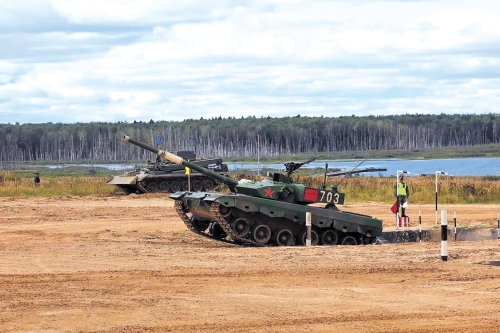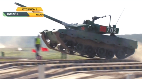 莫斯科當(dāng)?shù)貢r(shí)間9月5日,“國(guó)際軍事比賽-2020”“坦克兩項(xiàng)”決賽在阿拉比諾賽場(chǎng)展開(kāi)角逐,中國(guó)參賽隊(duì)駕駛96B坦克憑借出色發(fā)揮,射擊環(huán)節(jié)24發(fā)24中,以1小時(shí)29分30秒的成績(jī)奪得亞軍,創(chuàng)中國(guó)歷次參賽最好成績(jī)。 今年決賽是在中國(guó)、俄羅斯、白俄羅斯、阿塞拜疆之間角逐,“坦克兩項(xiàng)”決賽采用接力賽制,每個(gè)參賽隊(duì)派出三組選手駕駛坦克行駛12圈,通過(guò)各類(lèi)障礙,對(duì)24個(gè)目標(biāo)進(jìn)行射擊。  703車(chē)組通過(guò)反坦克壕