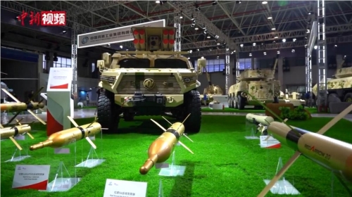 【解說(shuō)】據(jù)介紹,中國(guó)兵器工業(yè)集團(tuán)帶來(lái)的展品共計(jì)175款,其中52款為首次參展。在展館最顯眼處是一輛全新發(fā)布的升級(jí)款的VT4系列主戰(zhàn)坦克,它在態(tài)勢(shì)感知能力,有/無(wú)人協(xié)同作戰(zhàn)能力上有全面提升。