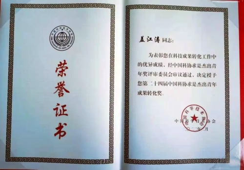 第二十四屆中國(guó)科協(xié)求是杰出青年成果轉(zhuǎn)化獎(jiǎng)