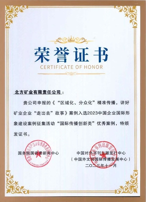論壇上,“2023中國企業(yè)國際形象建設案例征集活動”評選結果揭曉。評選活動以“挖掘典型案例、建設企業(yè)形象、講好中國故事”為宗旨,從來自中央企業(yè)、地方國企及民營企業(yè)報送的251個有效案例中遴選出“共建新絲路”“跨文化融合”“國際傳播創(chuàng)新”“筑夢人物故事”四類專項優(yōu)秀案例共40個。中國兵器工業(yè)集團北方公司北方礦業(yè)有限責任公司案例《“區(qū)域化、分眾化”精準傳播,講好礦業(yè)企業(yè)“走出去”故事》入選“國際傳播創(chuàng)新類”優(yōu)秀案例。 作為高質量共建“一帶一路”的重要力量,北方礦業(yè)堅持以“區(qū)域化、分眾化”精準傳播方式塑造企業(yè)形象,根據(jù)項目所在國社交媒體使用情況,建立臉書、推特、領英傳播矩陣,使用英、法、阿多語發(fā)布,堅持屬地人講屬地事,以高品質視頻、海報、圖文等多媒體形式講述中國企業(yè)為當?shù)乜沙掷m(xù)發(fā)展做出的貢獻,并取得積極傳播成效。