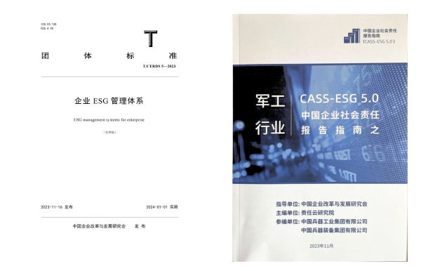 積極參與行業(yè)內(nèi)外社會(huì)責(zé)任生態(tài)建設(shè)。積極開展社會(huì)責(zé)任相關(guān)研究。集團(tuán)公司作為參編單位參與了國務(wù)院國資委組織中國質(zhì)量協(xié)會(huì)開展的《企業(yè)ESG評(píng)價(jià)指南》《企業(yè)ESG管理體系 要求》(團(tuán)體標(biāo)準(zhǔn))的編制工作,為ESG工作奠定堅(jiān)實(shí)的基礎(chǔ)。組織兵器規(guī)劃院與社科院責(zé)任云研究院合作,開展了《軍工集團(tuán)ESG管理體系研究》課題研究,結(jié)合軍工行業(yè)特點(diǎn),搭建軍工集團(tuán)ESG管理模型和指標(biāo)體系。為提升對(duì)上市公司ESG報(bào)告編制的指導(dǎo)性,編制《集團(tuán)公司ESG報(bào)告指南(2023)》(上市公司),為上市公司ESG報(bào)告編制提供全過程支撐。在“首屆中國上市公司可持續(xù)發(fā)展大會(huì)”上,中國企業(yè)改革發(fā)展研究會(huì)發(fā)布了集團(tuán)公司起草參編的《企業(yè)ESG管理體系》(T/CERDS5—2023)團(tuán)體標(biāo)準(zhǔn),在“2023中國企業(yè)社會(huì)責(zé)任報(bào)告峰會(huì)”上,正式發(fā)布了由集團(tuán)公司參編支持的《中國企業(yè)社會(huì)責(zé)任報(bào)告指南(CASS-ESG5.0)之軍工行業(yè)》。